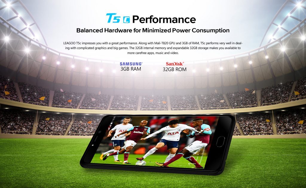Созданная на LTE-платформе SC9853I (14 нм) от Spreadtrum модель LEAGOO T5c оснащается восьмиядерным 64-битным процессором Intel Airmont с частотой 1,8 ГГц, что обеспечивает смартфону высокую производительность вычислительных операций в сочетании со сверхнизким энергопотреблением. По сравнению с конкурентами LEAGOO T5c демонстрирует 25% повышение быстродействия и 30% сокращение объёмов потребляемой энергии. Новинка также поддерживает сеть САТ 6, две SIM-карты с двойными режимами ожидания и 4G, что гарантирует превосходные характеристики голосовой связи в сетях LTE и значительно повышает качество коммуникации.